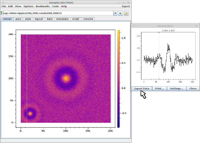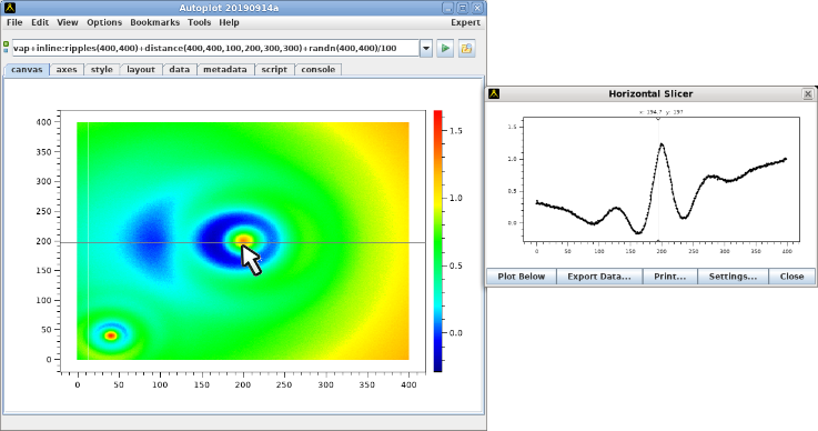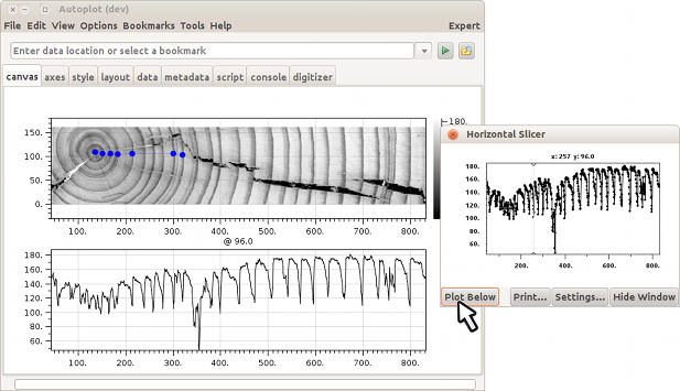 20131220a: Winter break project: can a script count the rings? Also the horizontal slicer has a button to move the data to a plot below.