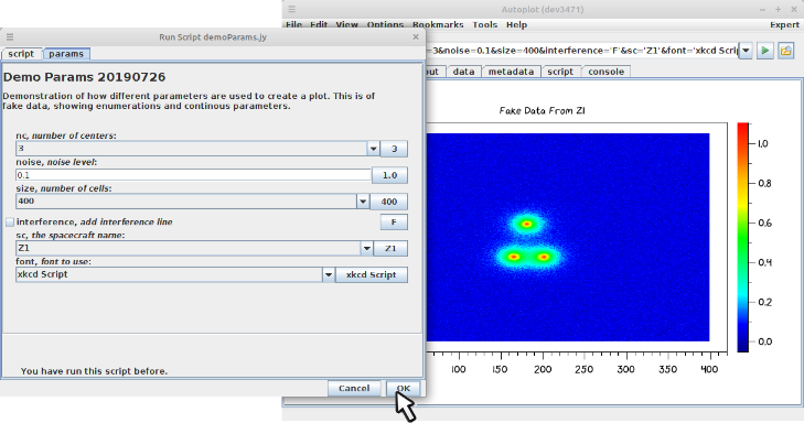 20200118a: Script setScriptTitle and setScriptDescription are used to make a friendlier GUI. The script.