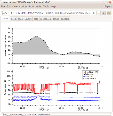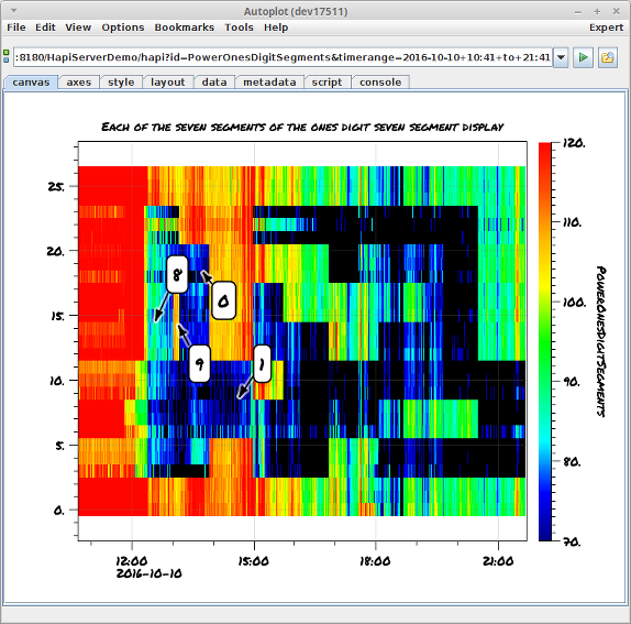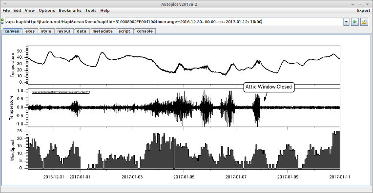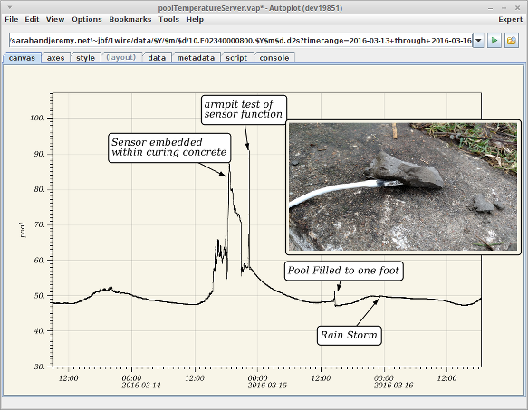 20160227a: Annotations used with Autoplot to study data from 1-wire sensor.