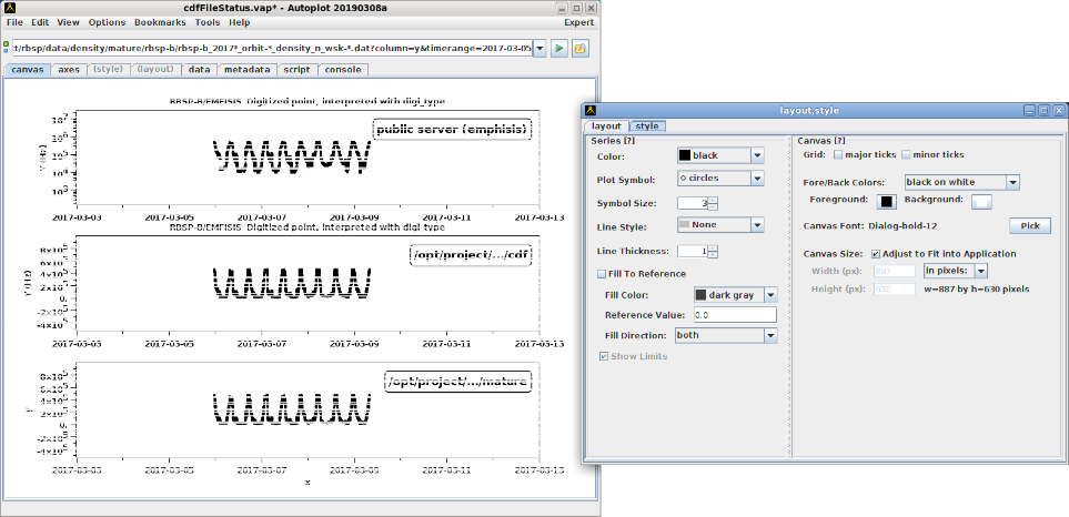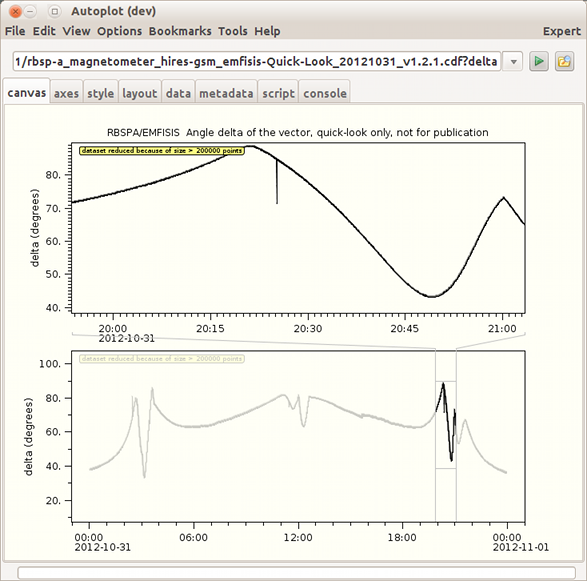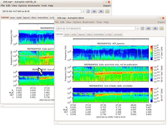 v2018a_12: Autoplot is used to diagnose a problem when identifying continuous L-shell sweeps.