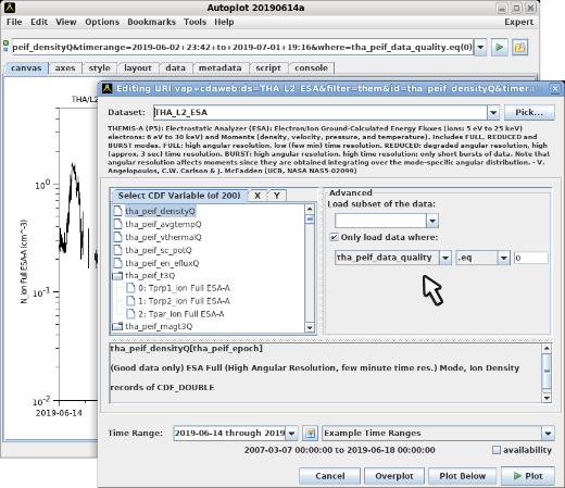 v2019a_7: CDF Editor shows documentation for CDF variables, and here we load data where the quality is marked as good.