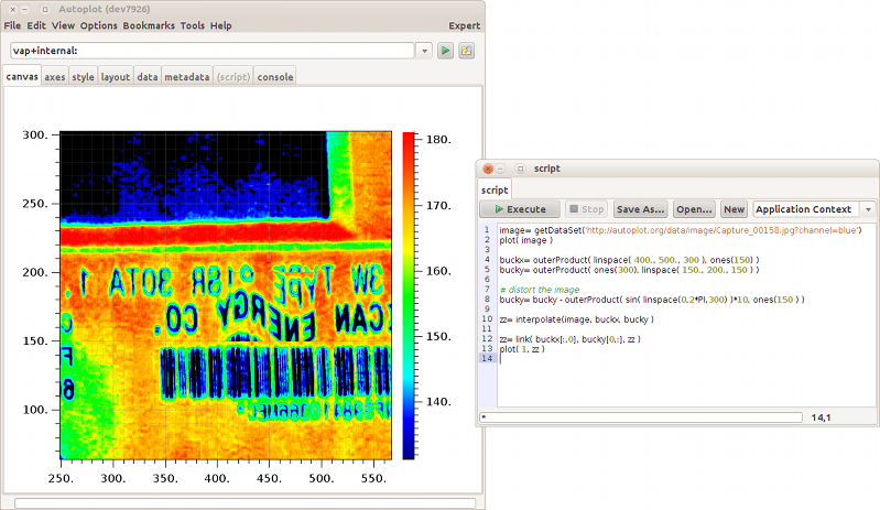 20140804b: Fun using interpolation to distort part of an image.