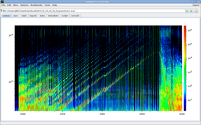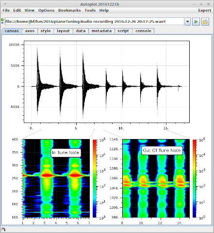 20190914a: Out-of-tune key on piano is seen in spectrogram.