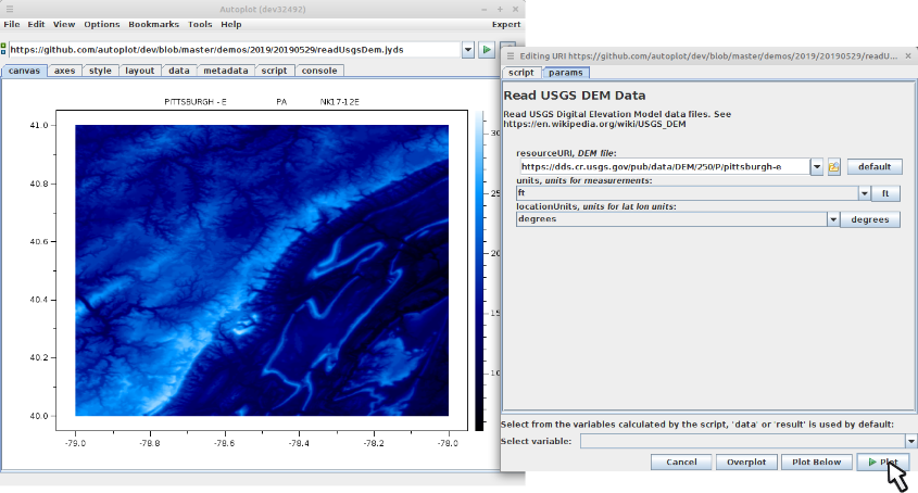 v2019a_6: Paste plot from clipboard is corrected. Here a script for reading DEM files from the USGS is plotted under North American rivers file.
