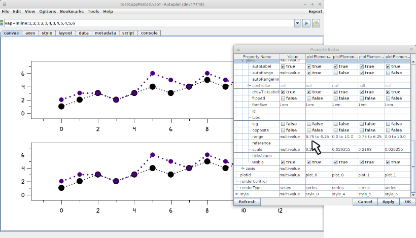 20130203a: Copy Plot Elements Down no longer resets the ranges. This was a bug.