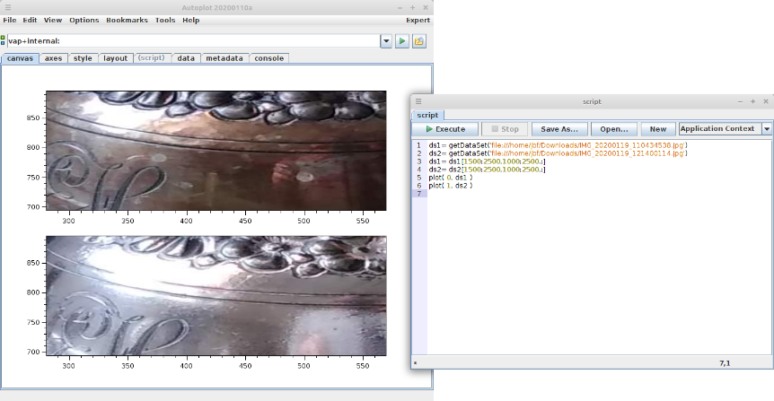 20200125a: Polishing silver with Autoplot. Script is used to extract small portion from two images for comparison.