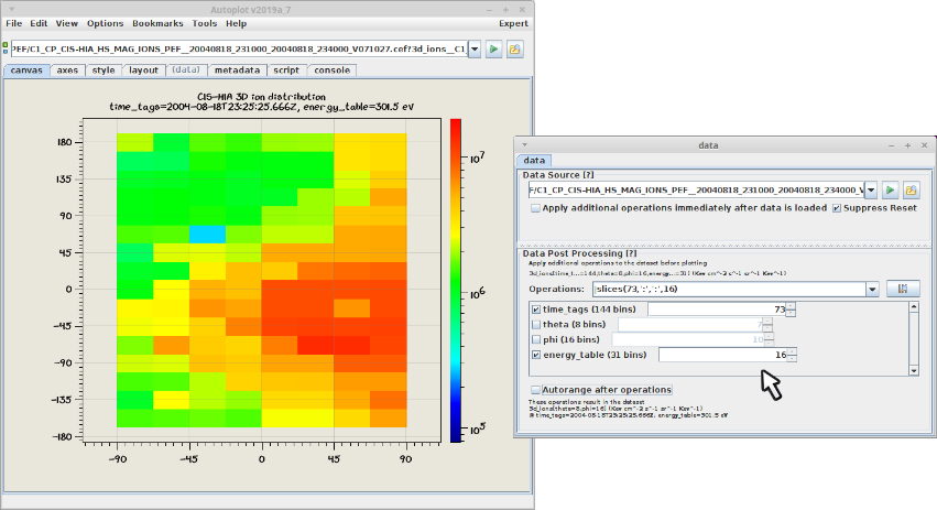 v2019a_8: Slices filter used to look at Cluster/CIS data from a CEF file.
