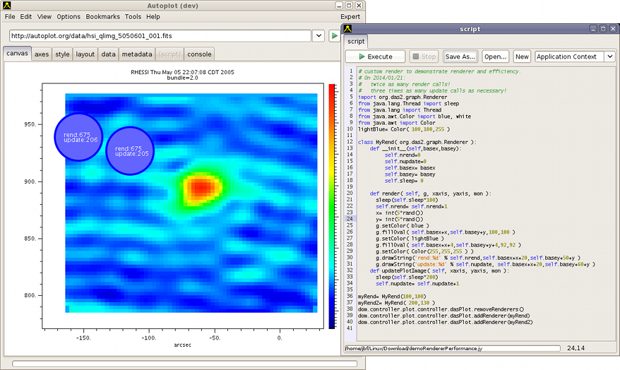 20140127a: A script is used to study the slowness in rendering since a different bug was fixed late last fall. The bug is fixed now.