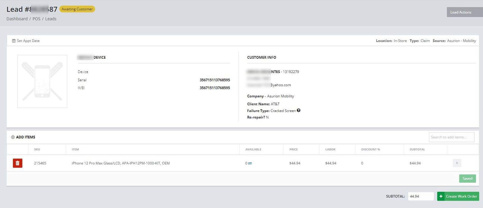 Contact (call and email) customers when leads are created; during this contact make sure to set an appointment time, manage device and parts on the lead, and change the lead status