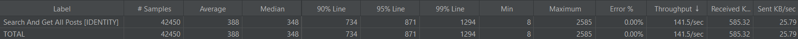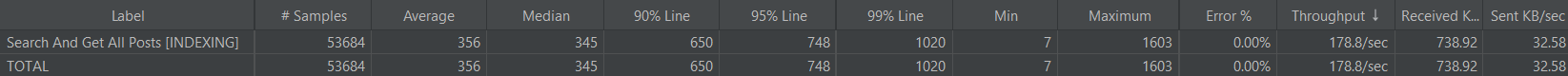 - 게시글 검색 및 조회 성능(Throughput)을 141.5/sec → 178.8/sec 약 26% 개선했습니다.