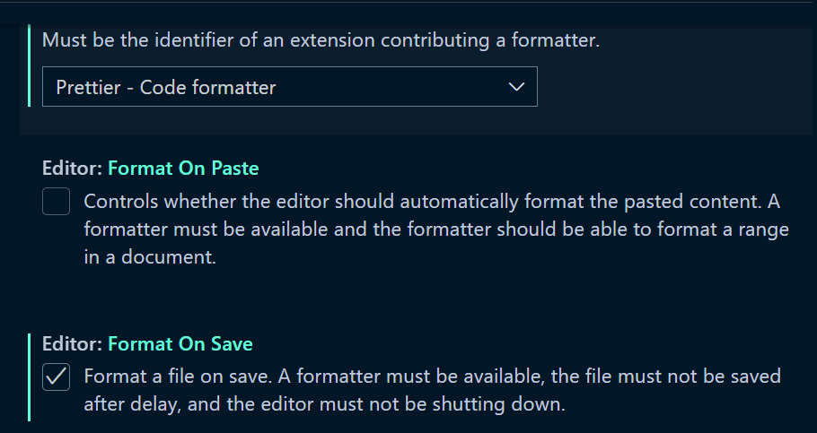 이렇게 해둔다면 같은 .prettierrc 파일을 공유함으로서, 팀원들과 똑같은 코드 포맷을 유지할 수 있다.
