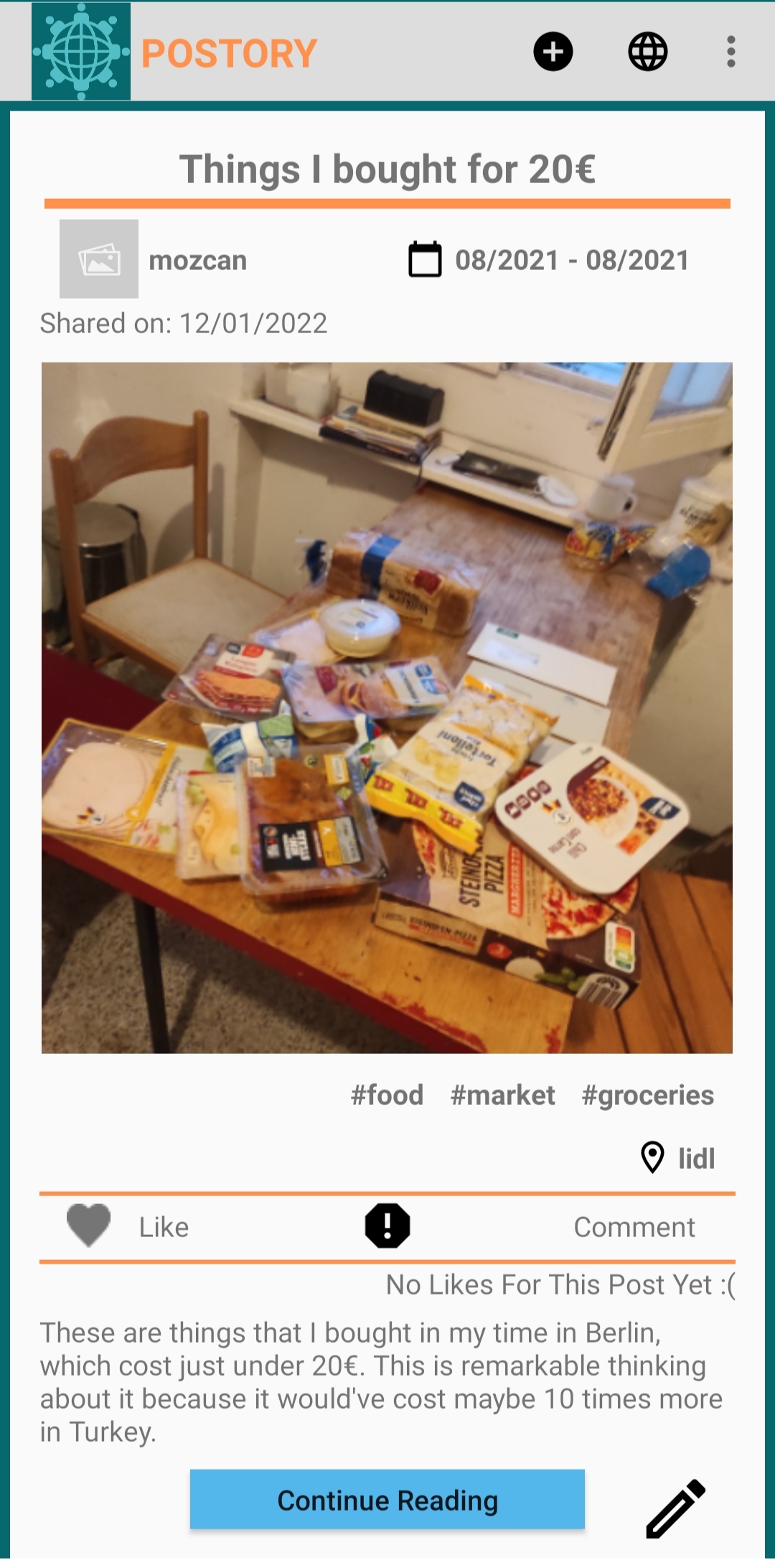 After entering various inputs, specifying a post photo, a title, a body, tags and geolocations, users can create posts. Below, you can see the initial look of the Create Post page. (see Fig16)