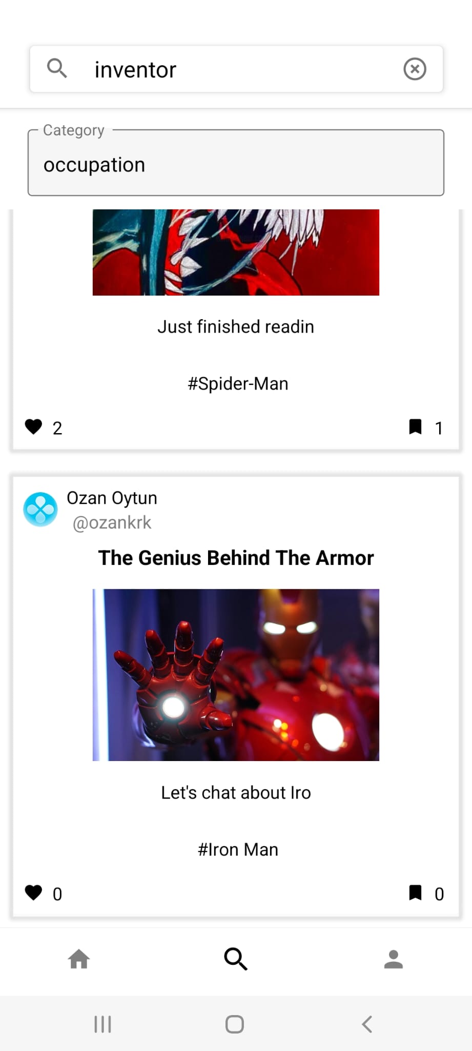 - Ozan submits the post and tries to find some metadata for his post. He enters the search bar and searches by occupation.