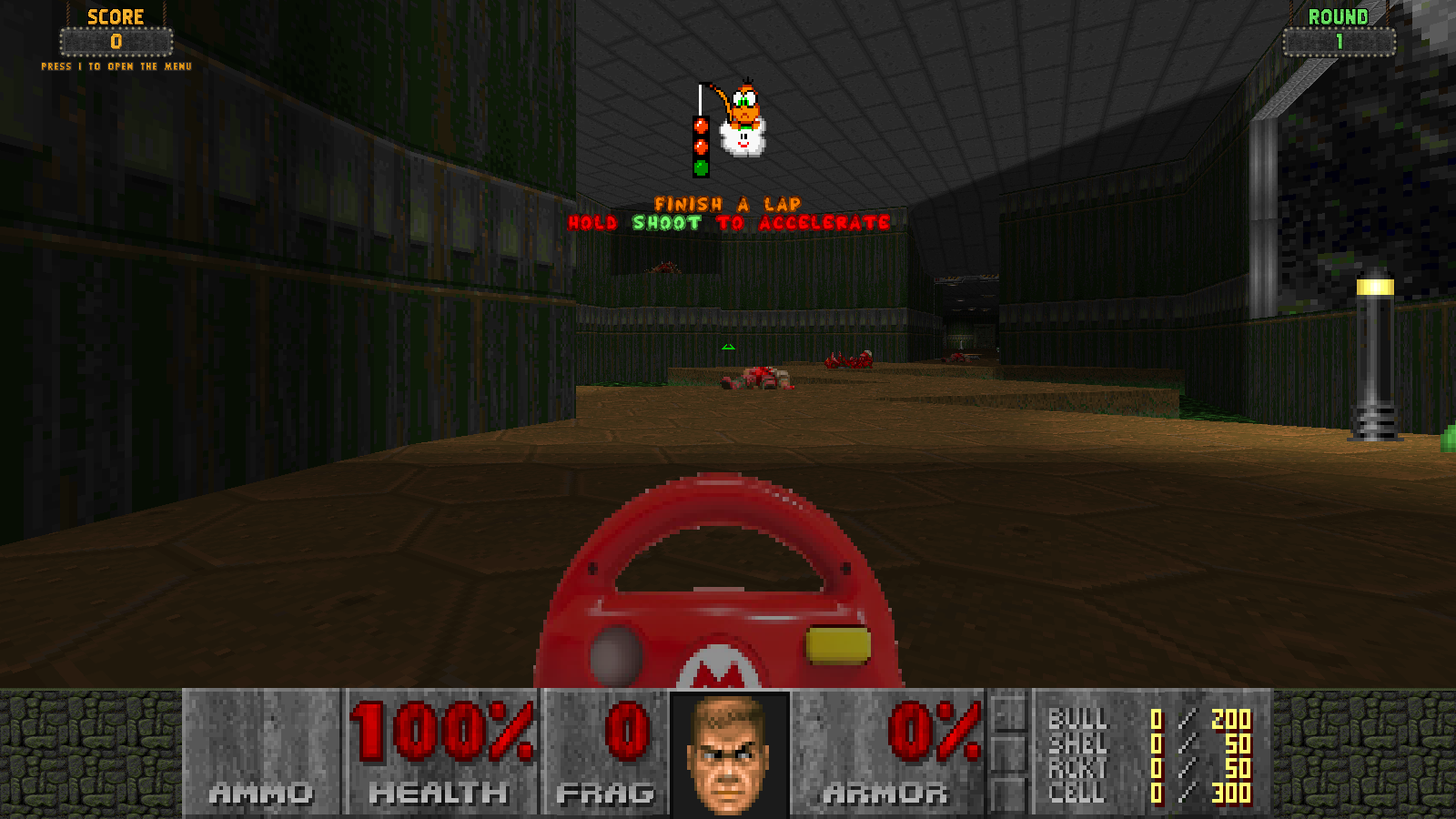 This plays exactly like Reach the End (Karts), except instead the racetrack is an extension of E1M1's NUKEAGE area.