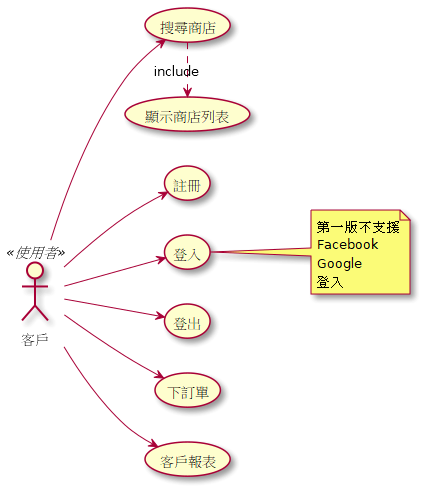 UML 的使用個案圖,和 User Story 類似卻又有些不同,上述的 User Story 若表達成《使用案例圖》會是這樣: