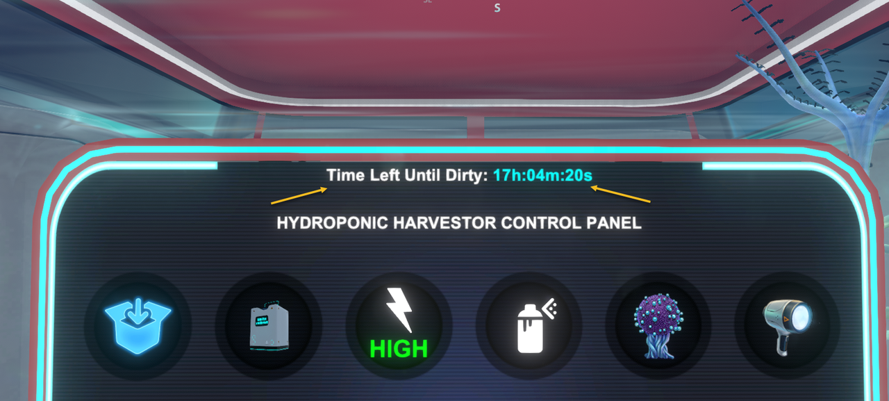 To clean the Hydroponic Harvester just head over to the screen, click this button and drop it in.