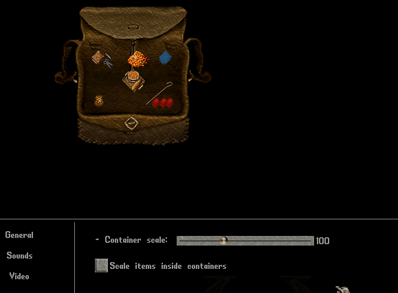 With the new Container Gump Scaling option the size of the gump can be enlarged or shrunk. This is a great feature if you're playing on a high resolution monitor. There is also a secondary option of scaling the items in the container as well.