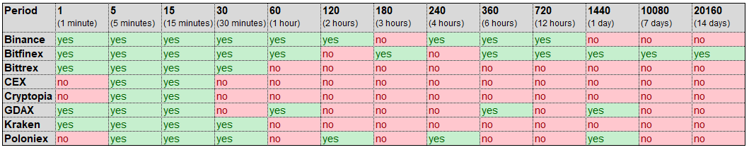 Gunbot suporta diferentes valores diferentes de PERIOD para cada exchange.