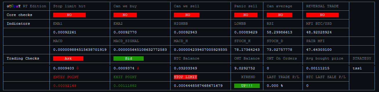 Muitas vezes esta tabela estará quase em branco, mostrando que nenhuma nova oportunidade pode ser encontrada. Isso é normal e significa apenas que o bot está esperando que as condições de compra ou venda da estratégia apareçam.