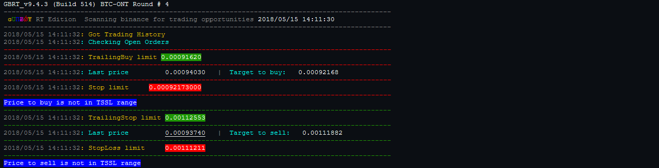 Quando os logs indicam que o preço está dentro do intervalo, isso significa que o preço atual está entre StopLoss limit e TrailingStop limit.