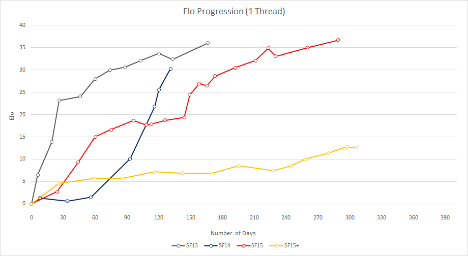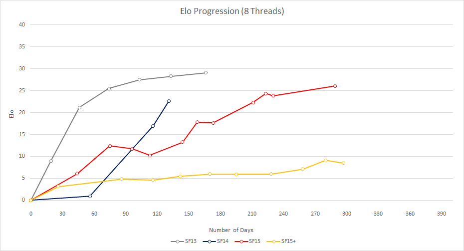 All of the information below has been generated from the results of tests performed on the Fishtest framework. All data and graphs can be downloaded here. Please get involved if you have questions or suggestions!