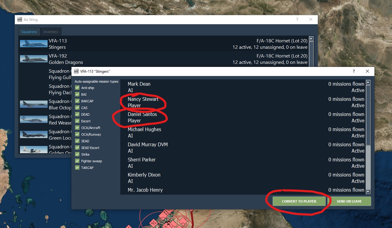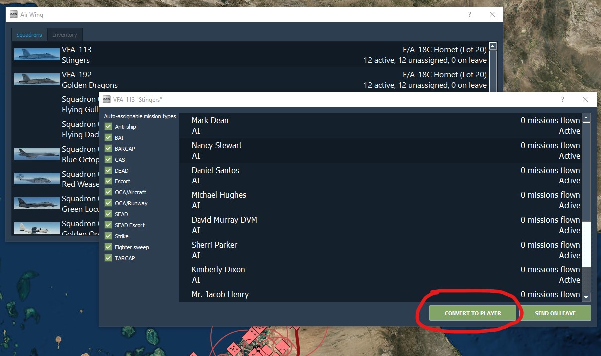 Once we have set up the human pilot assignments, we close the Air Wing dialog.