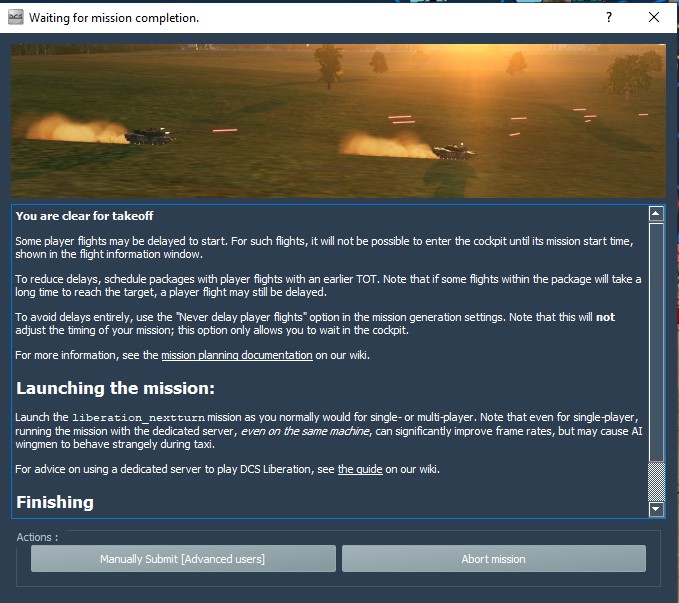 Liberation then shows us a window, indicating that it is now waiting for use to run and complete the mission in DCS.