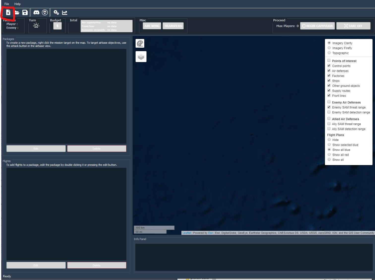 - This is the toolbar. From here we can create new campaigns, load saved ones, change the campaign and mission generation settings, etc.