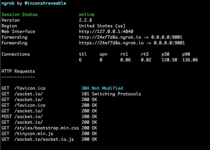 You can now use the http://XXXXXXXX.ngrok.io address to share your log. This will be active as long as ngrok is running. To cancel, ctrl-c.