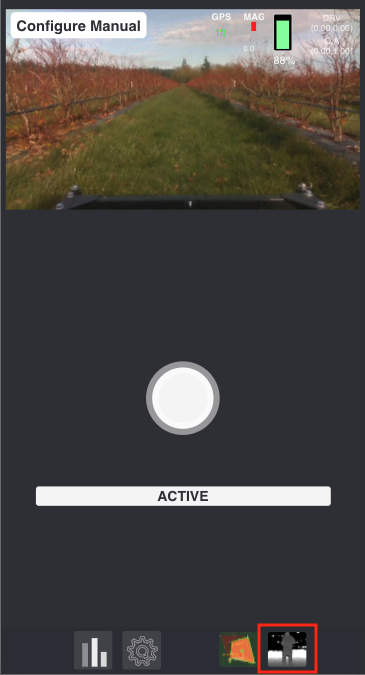 Tap/click the "follow" icon at the bottom right corner of the manual control screen