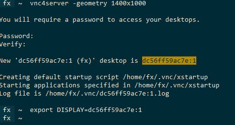 export DISPLAY=<change this to the right DISPLAY name from vnc server output, see screenshot below>-