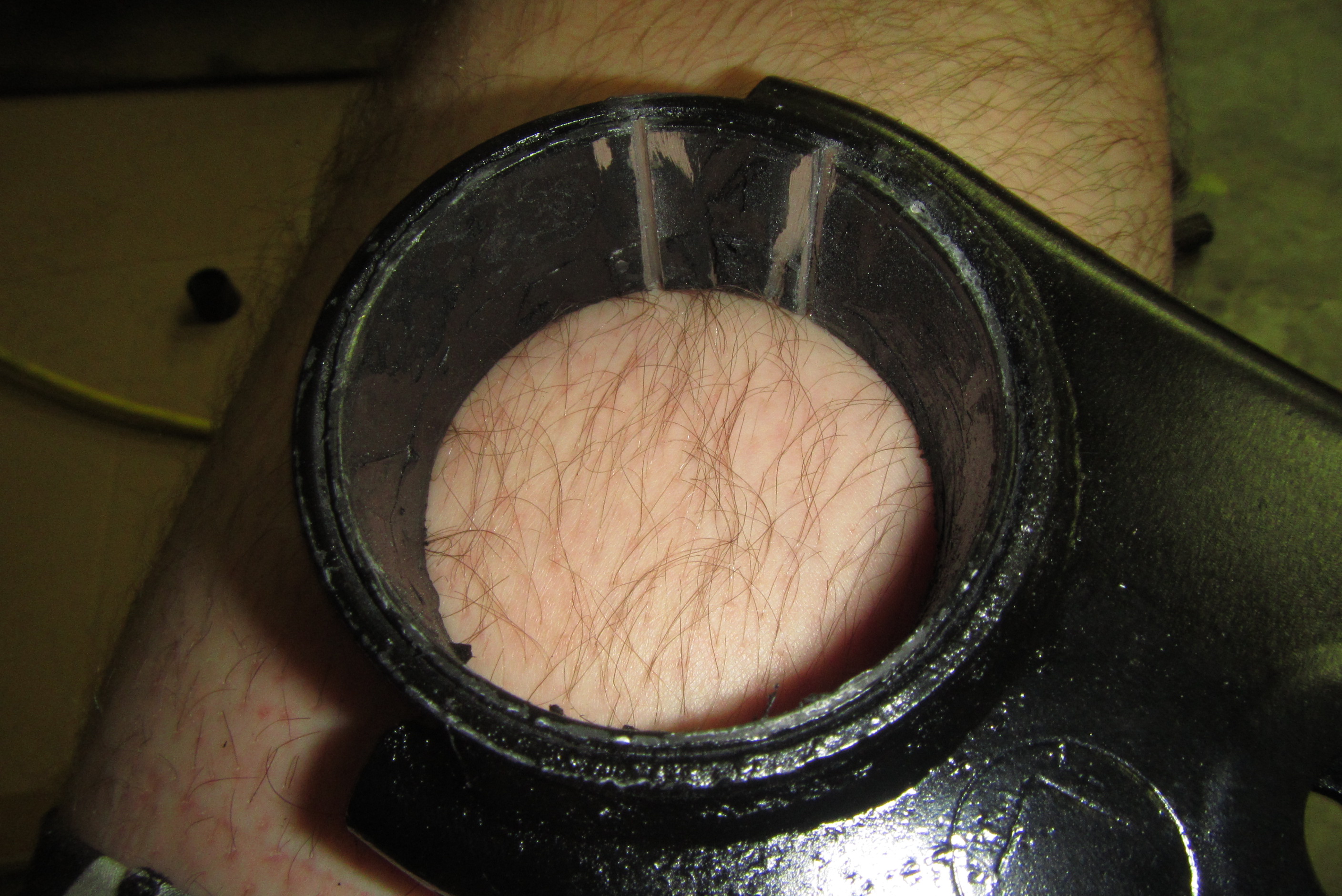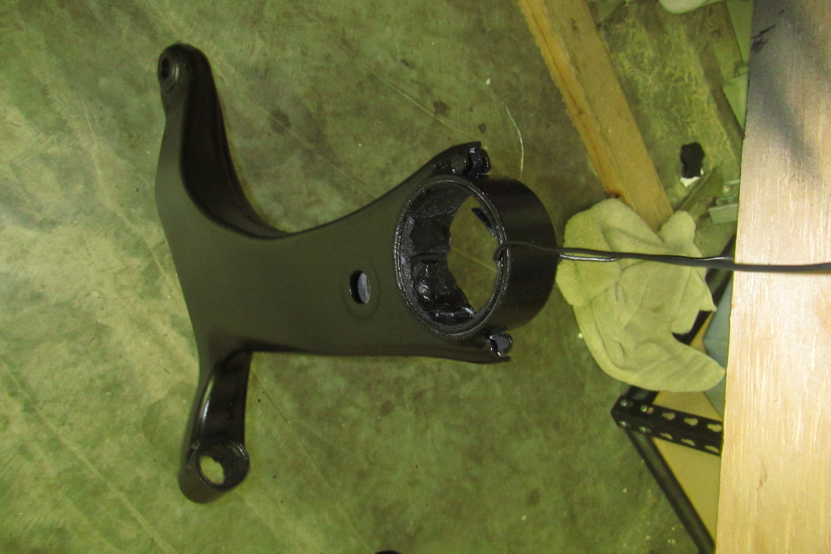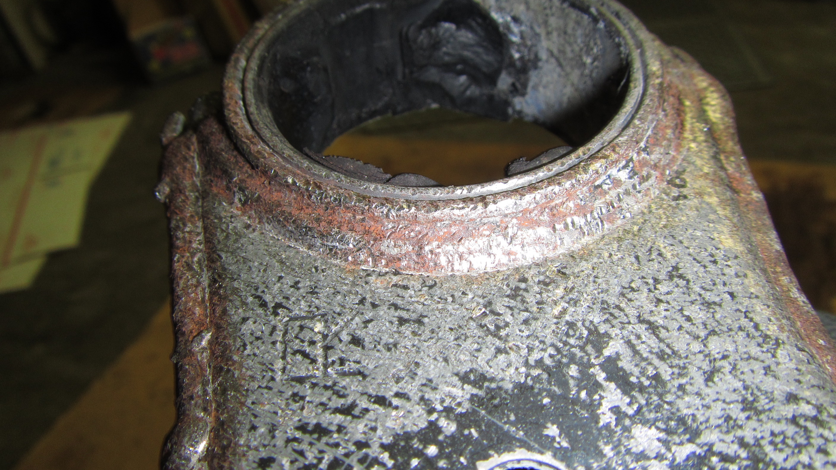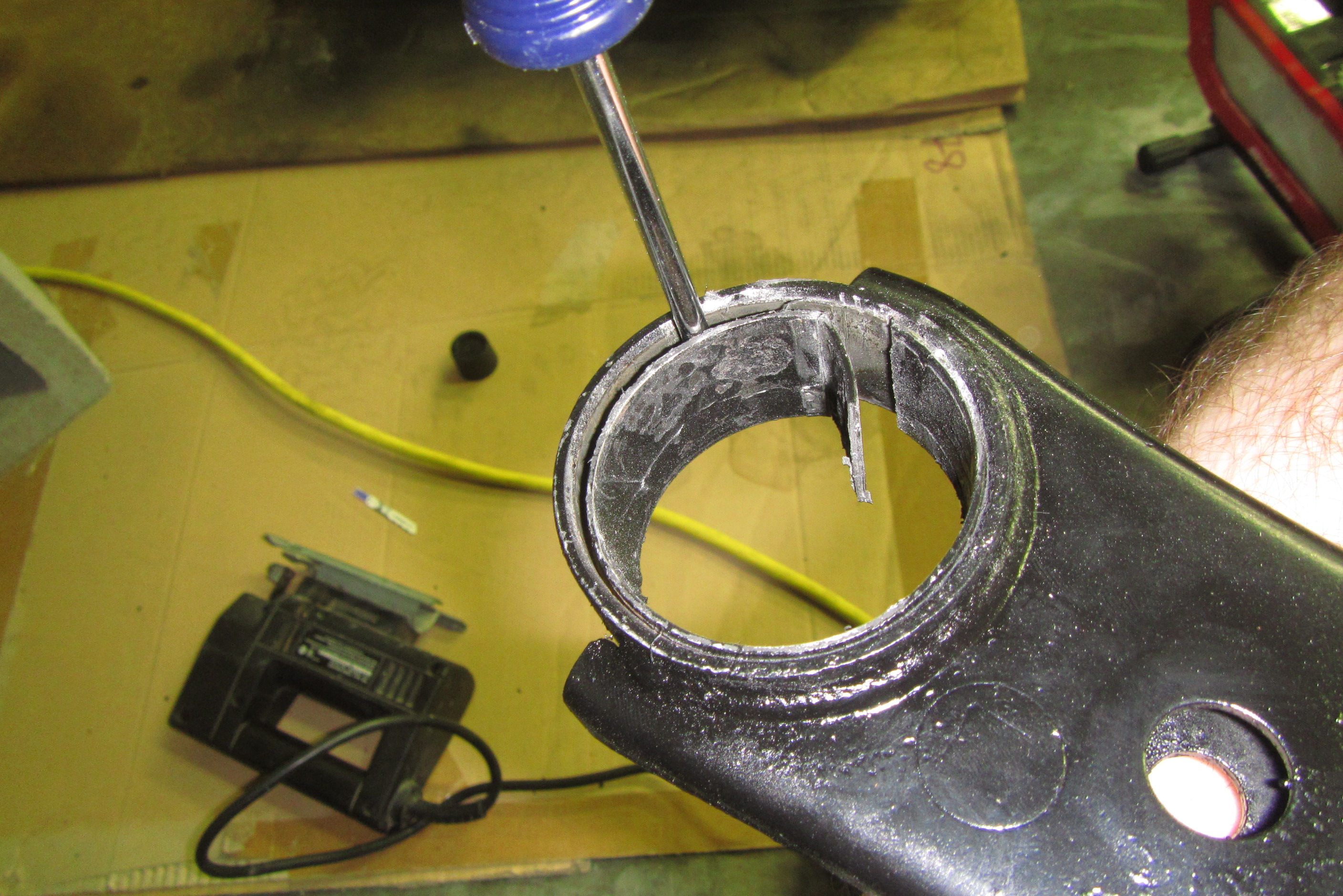 I left the old bushing sleeves in during blacking to keep the inner surfaces clean. Jigsaw and screwdriver made quick work of removal...