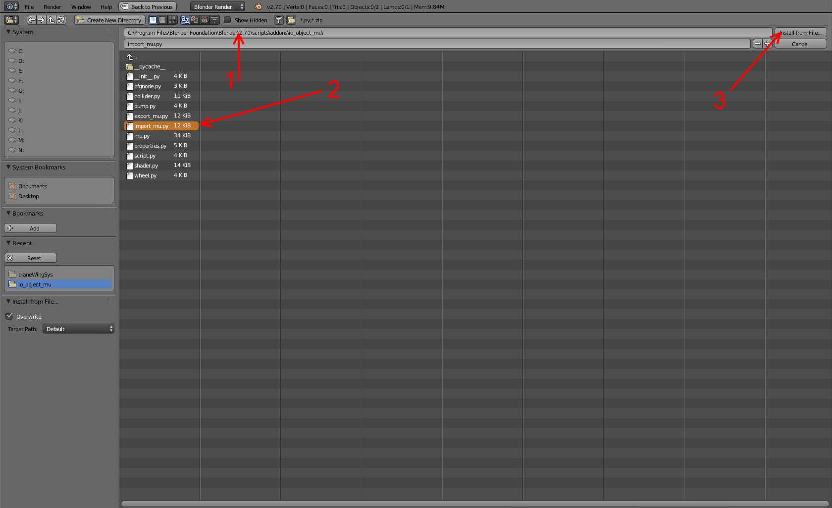 Now let's add the .mu importer by clicking the Install from File... button (4)