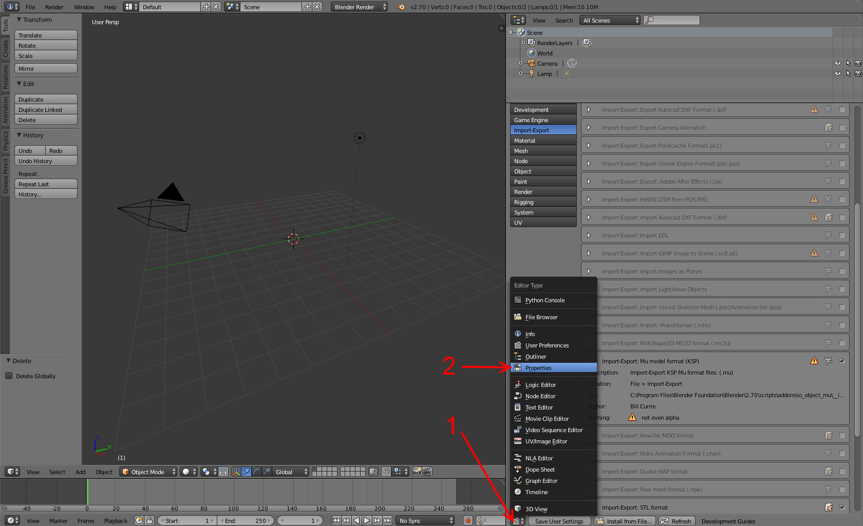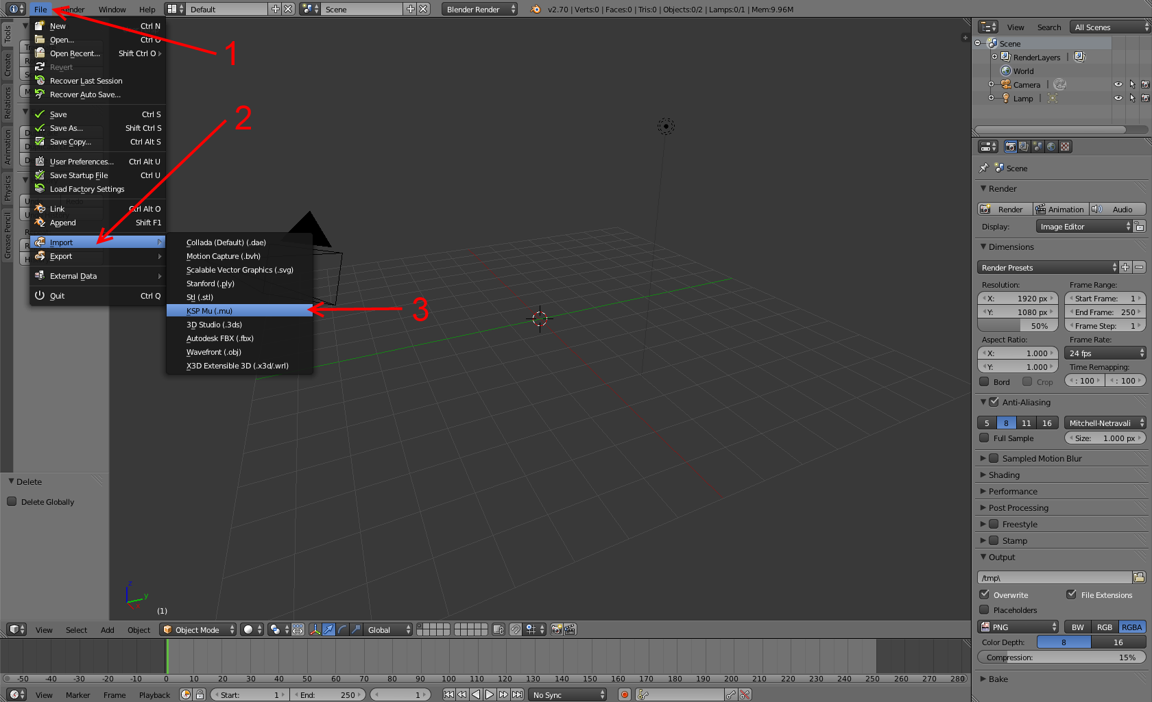 The KSP .mu model format requires a custom importer to be added to Blender in order for us to load them in the program.
