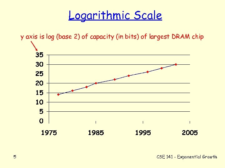 Questa figura mostra l'aumento dei chip di RAM dinamica negli ultimi anni; la scala sull'asse y è logaritmica, quindi anche se non sembra, l'aumento è esponenziale.