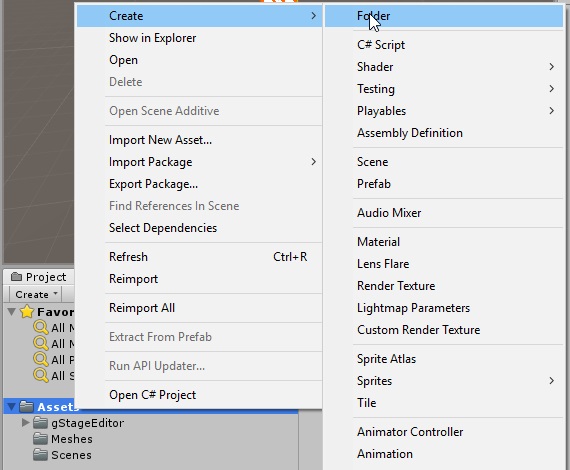 Go to the "Assets" folder, select it, right click and select Create, then Folder.