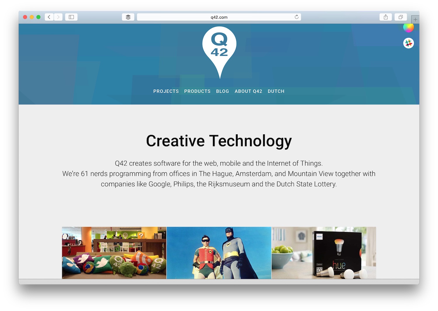 layout: blog_post title: How Q42 is using Kadira category: user-story summery: Q42 is a Dutch consultancy firm and this is how they use Kadira. They build apps for top companies like Google and Phillips.