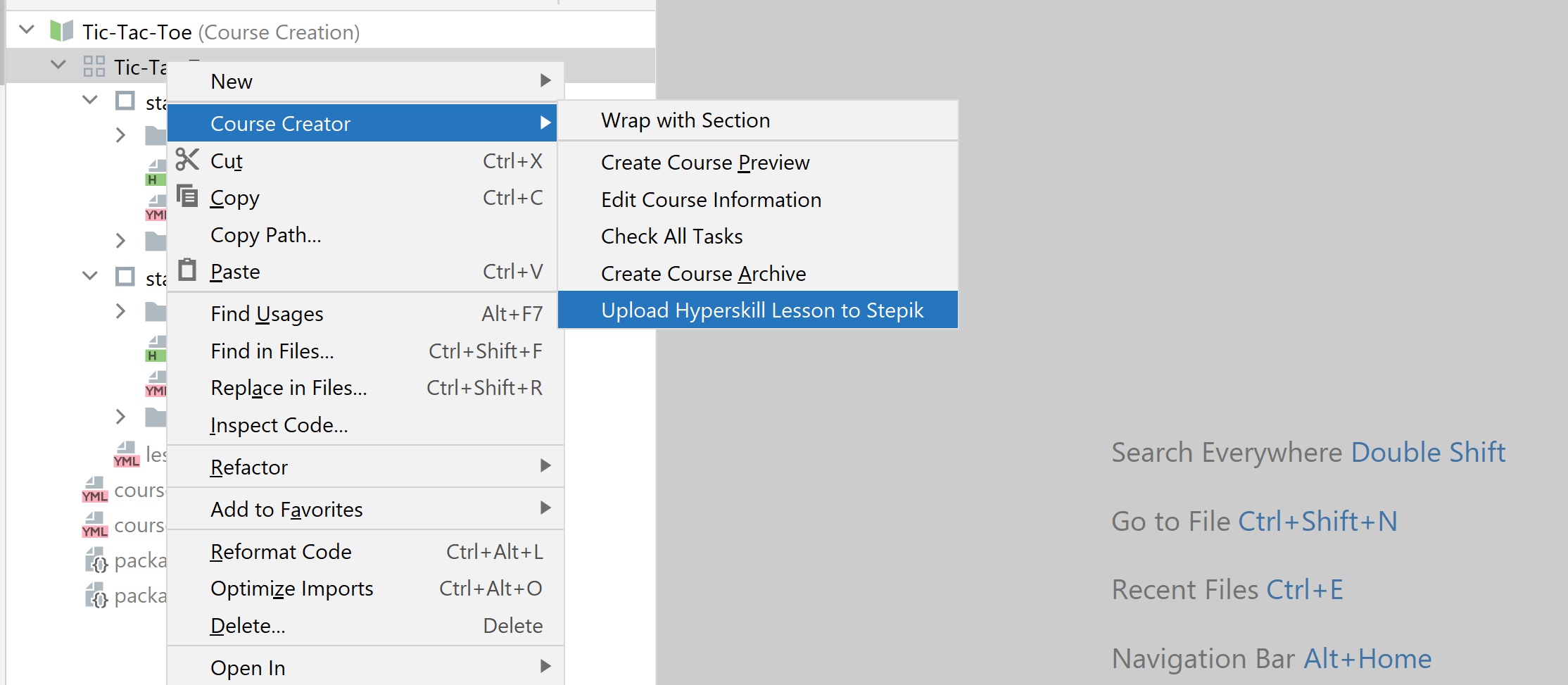 To create a project, you need to click File -> Learn and Teach -> Create New Hyperskill Course