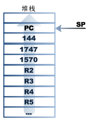 - 进入我们写的汇编函数时,堆栈状况如下: