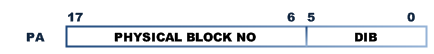 4] 将得到的物理块号[PBN],与虚地址VA中的块内偏移[DIB]段,拼接成物理地址[PA]