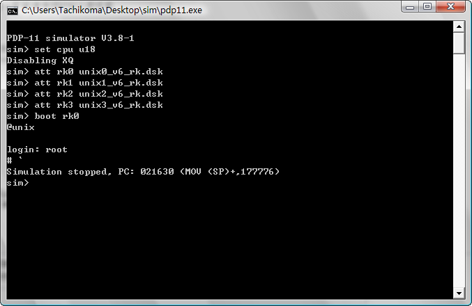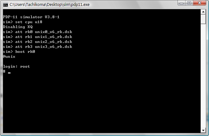 - 启动后,就已经在UNIX V6 模拟环境下运行了,可以进行各项试验