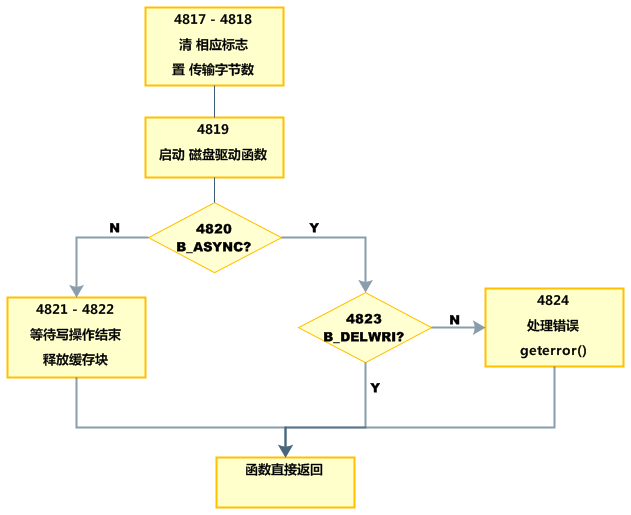 - 若有异步写(B_ASYNC)标志,则不用等待该次I/O完成