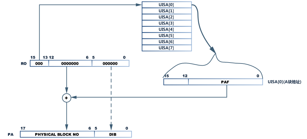 - 置R0=0=0000000000000000(16位2进制),下图为(R0)的寻址过程