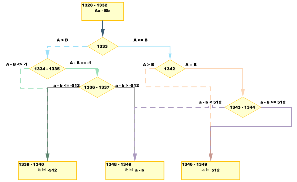 - 若 Aa - Bb < -512 ,则返回-512