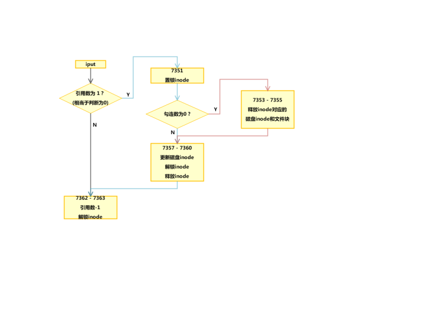 - 7358 是为了在释放内存inode块之前 解锁并唤醒等待进程