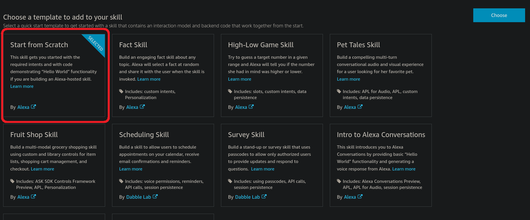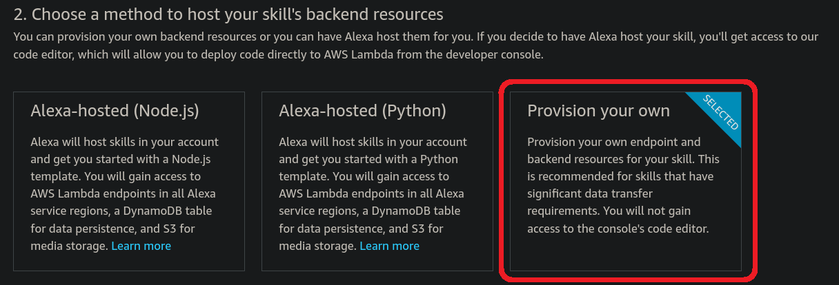 - go to the Amazon Developer Console webpage for Alexa and create a new skill