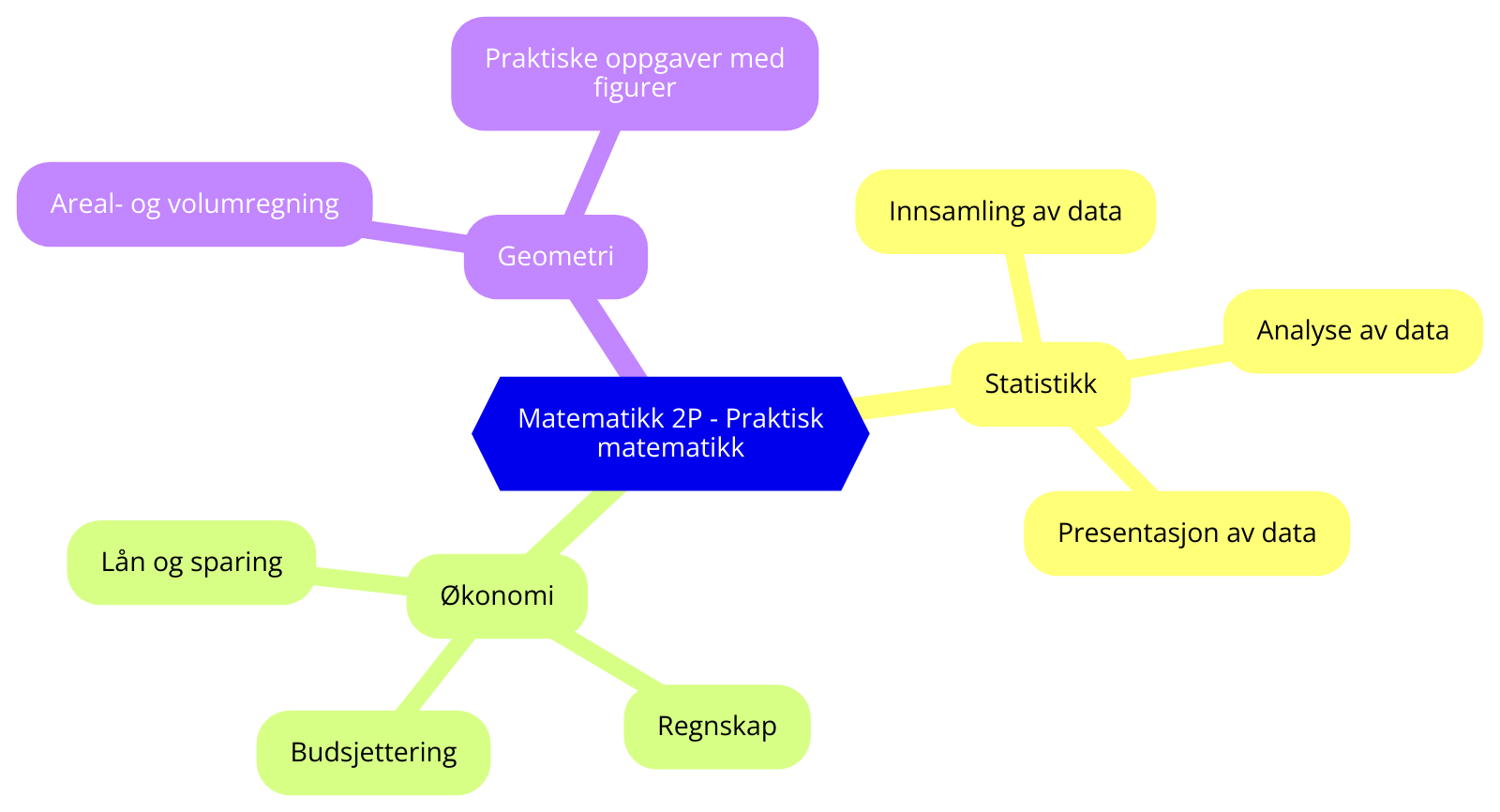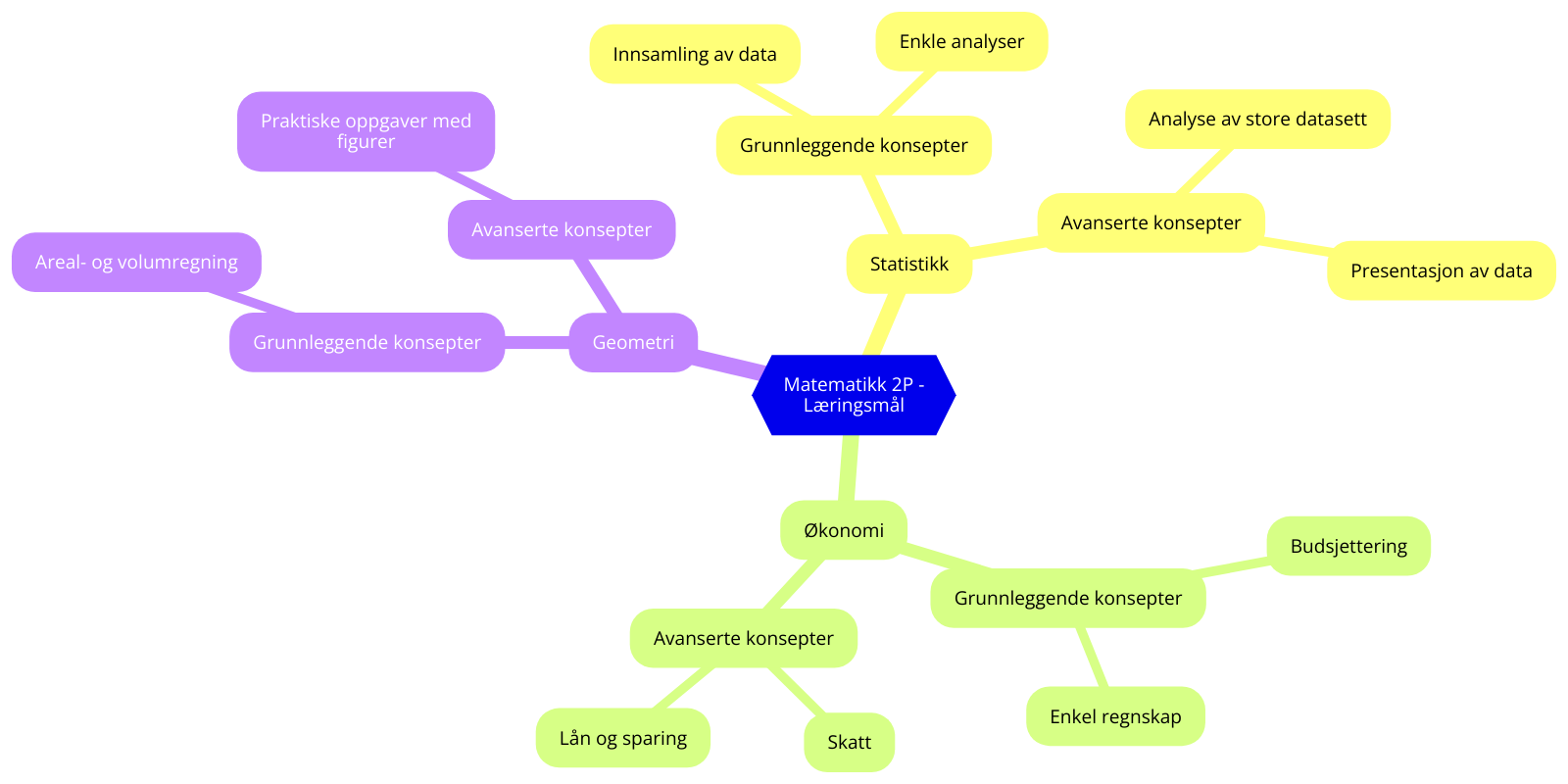 Jeg vil nå lage et tilsvarende tankekart for matematikk 2P.