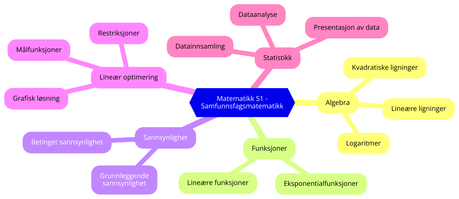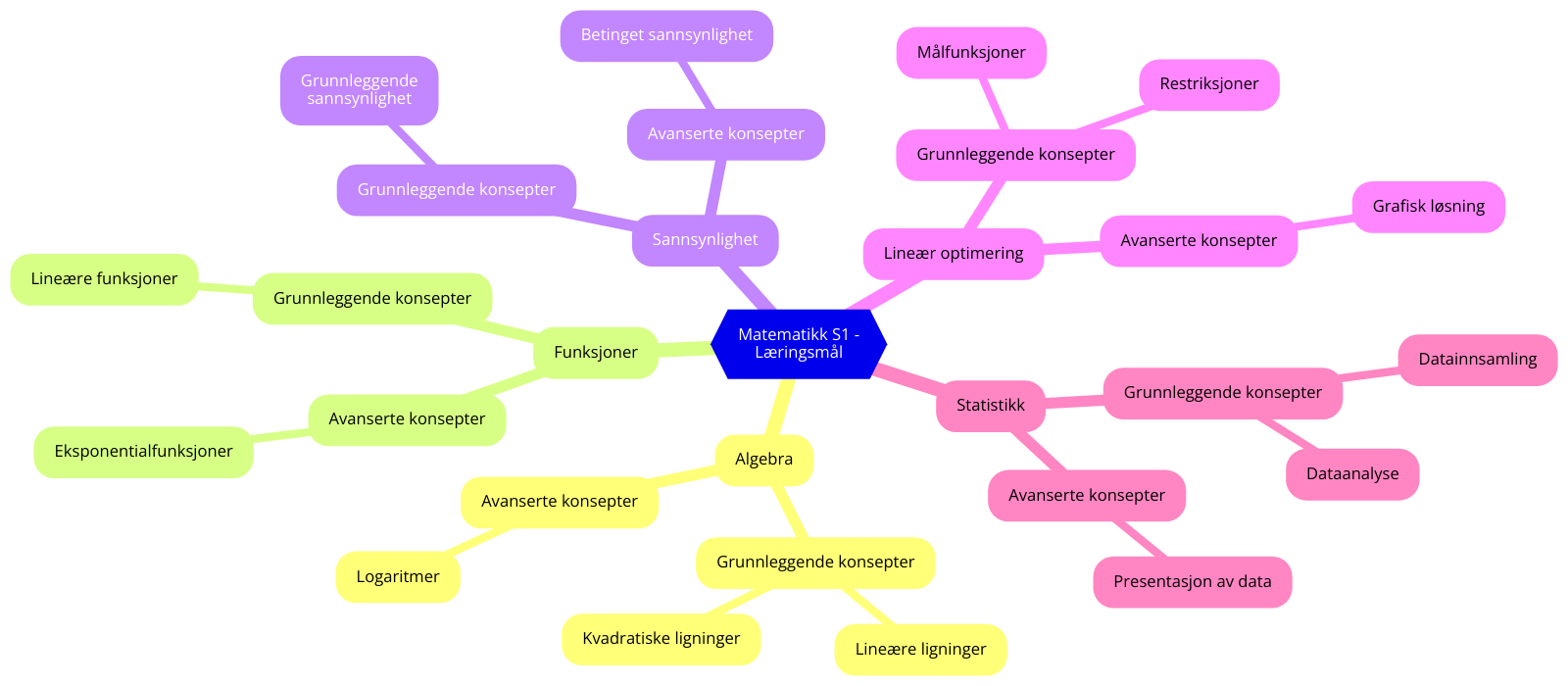 Jeg vil nå lage et tilsvarende tankekart for matematikk S1.