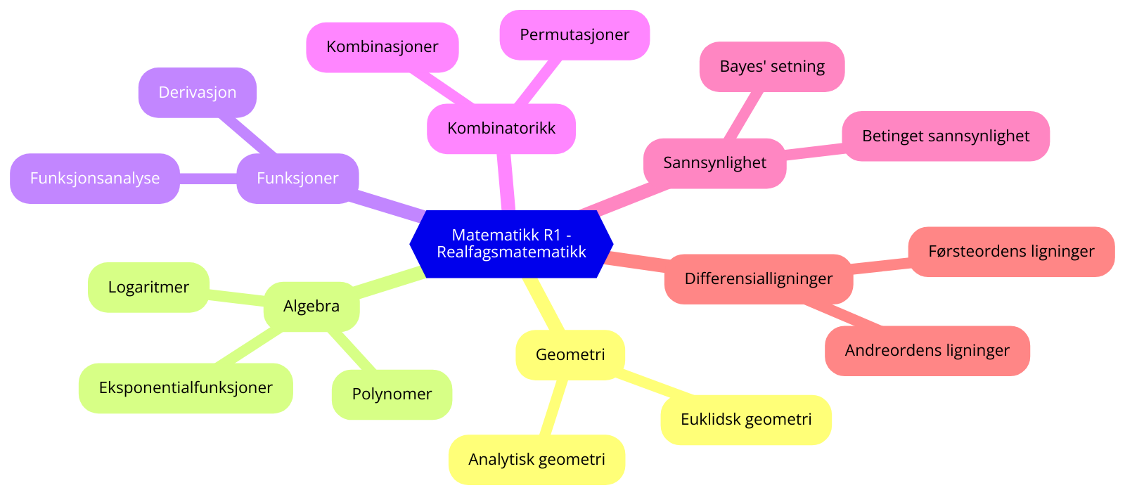 Jeg vil nå lage et tilsvarende tankekart for matematikk R1.