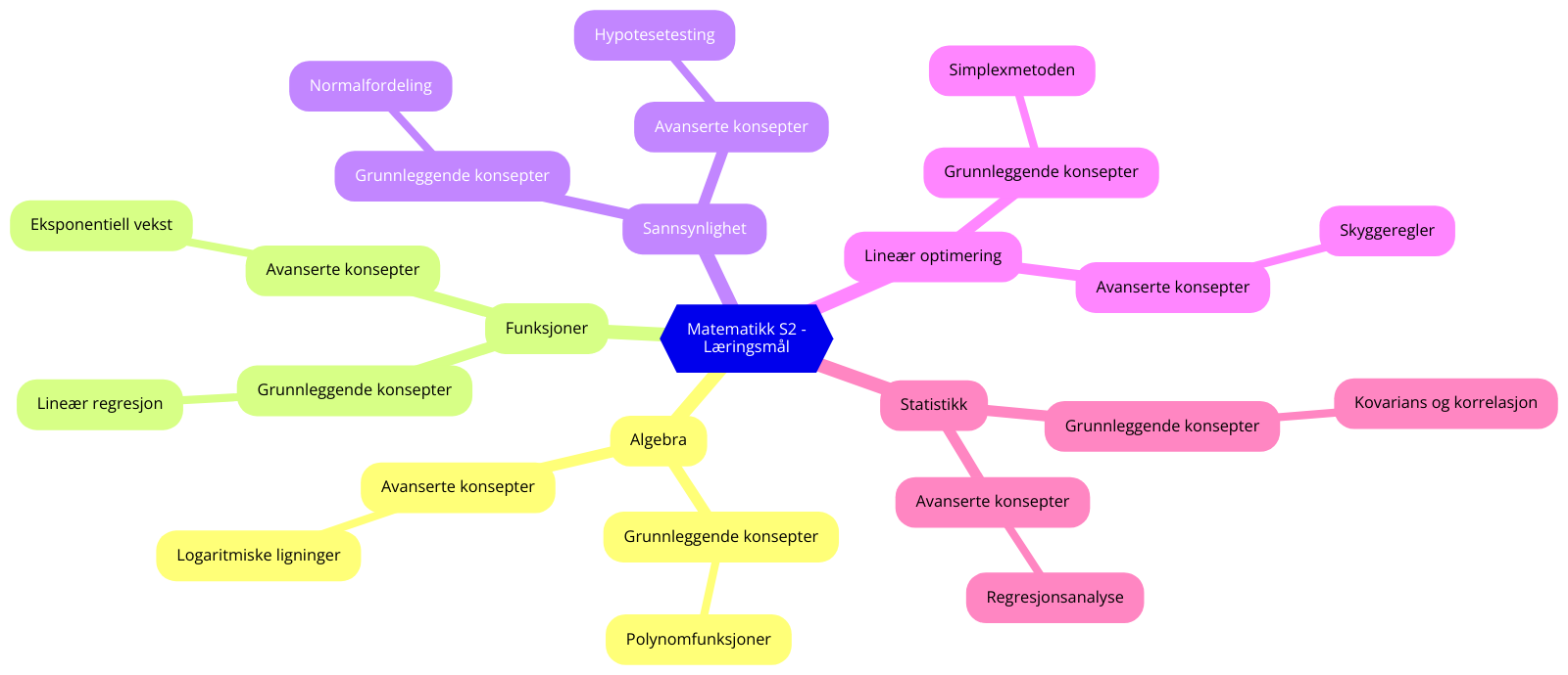 Jeg vil nå lage et tilsvarende tankekart for matematikk S2.